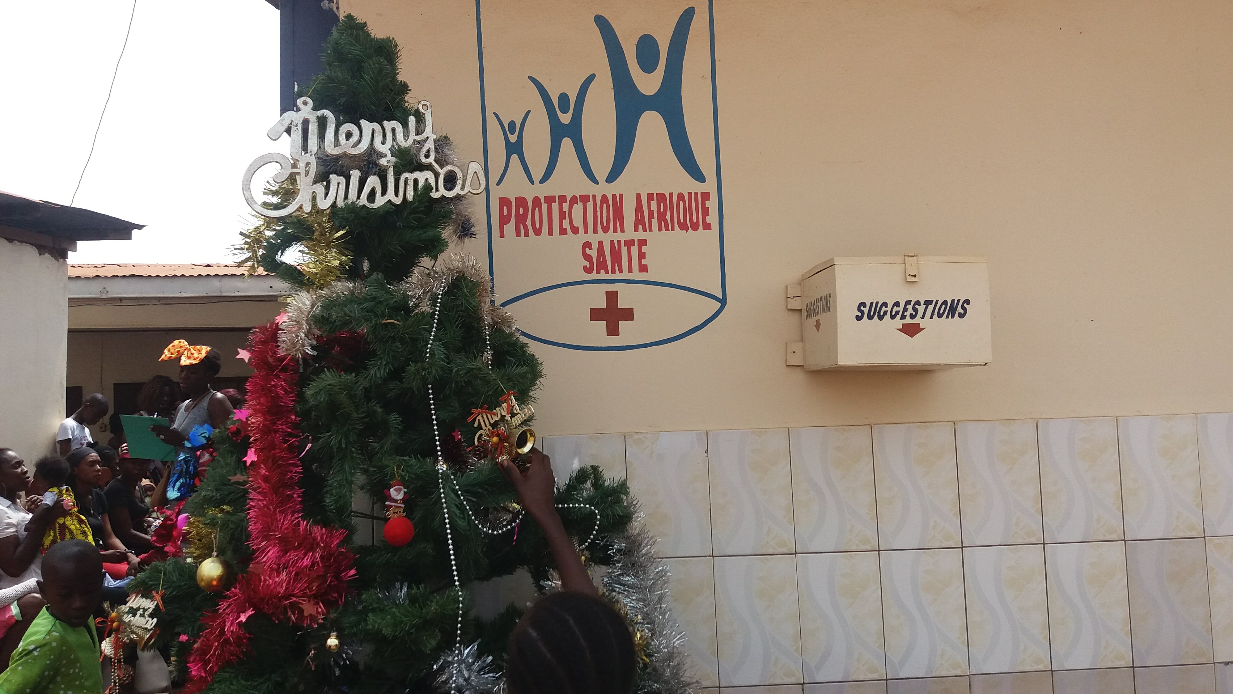 Journée de distribution des dons au centre de santé Saint Christophe à Yaoundé au Cameroun en décembre 2017. Ces dons sont des jouets ou livres ou vêtements pour le noël des enfants patients ou enfants des patients du centre de Santé Saint Christophe